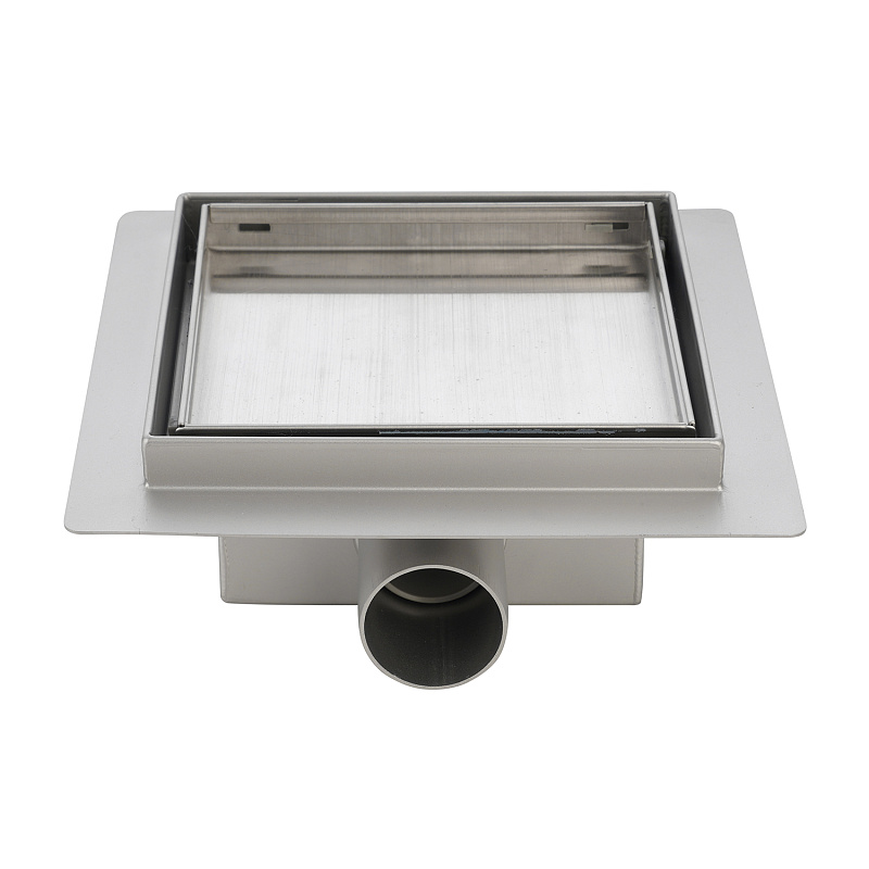 —Трап для душа AZARIO 150х150 цельнометаллический, решетка "под плитку", горизонтальный выпуск (AZZ1TILE150)
