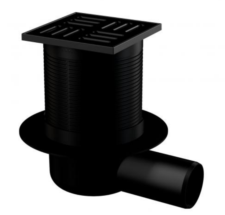 Сливной трап Alcadrain 105 × 105/50 подводка – боковая, решетка – черный матовый APV31BLACK