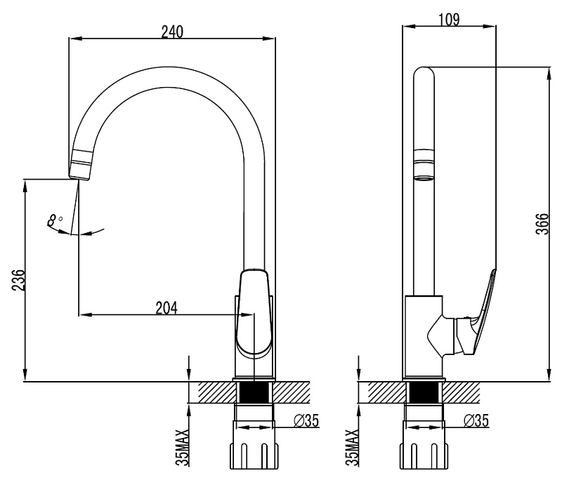 —Смеситель для кухонной мойки AZARIO TAVIRA керамический картридж, хром (AZ-WKE56411C-X63)