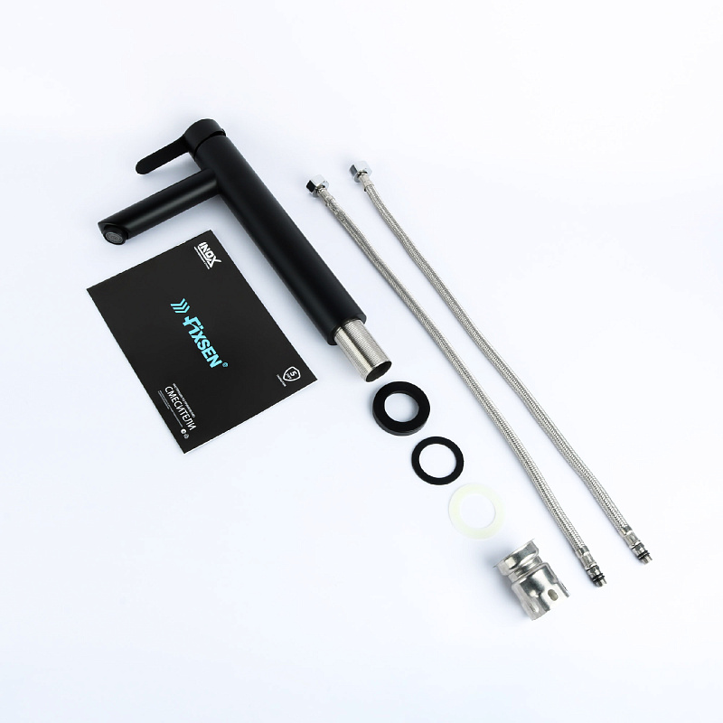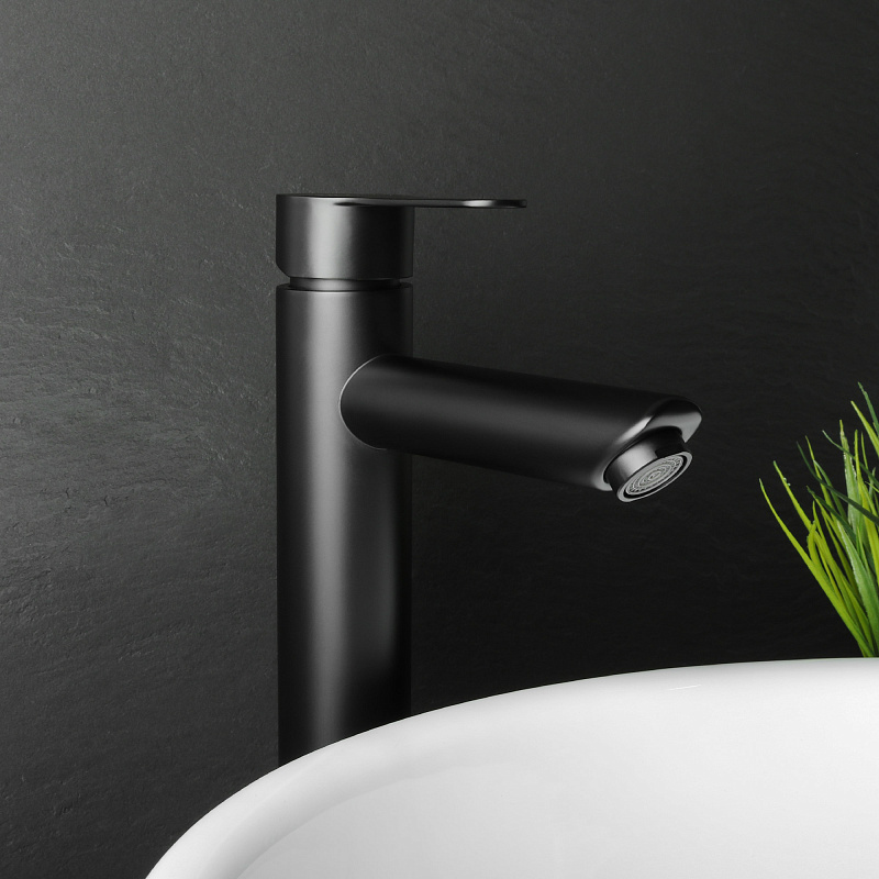 Смеситель для раковины-чаши Fixsen NORDIC высокий излив, однорычажный, керамический картридж, черный (FX-8809B)