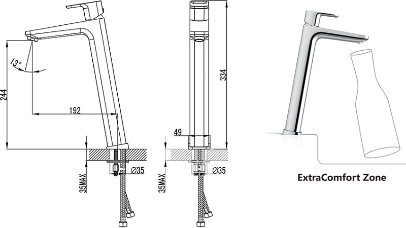 ExtraComfort Zone - дополнительная высота смесителя