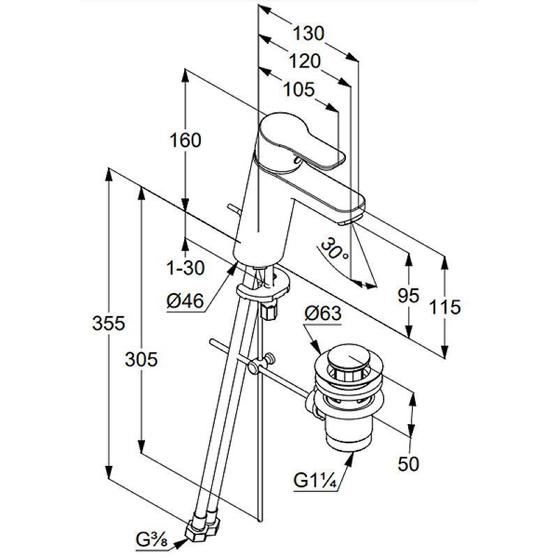 Стандарт подводки: гибкий G 3/8.