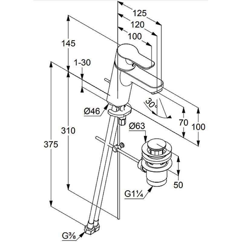 Стандарт подводки: гибкий G 3/8.