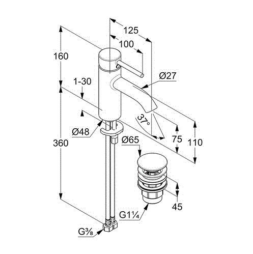 —Смеситель для раковины KLUDI BOZZ WHITE с донным клапаном, белый матовый (382665376)