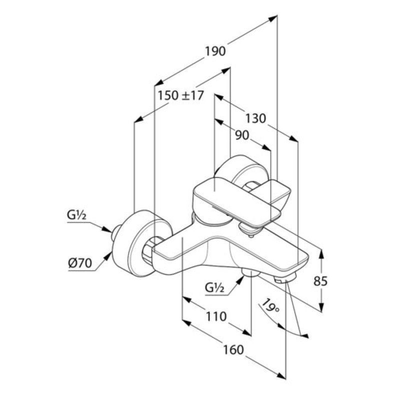 Смеситель для ванны и душа KLUDI PURE&STYLE однорычажный, черный матовый (406813975)