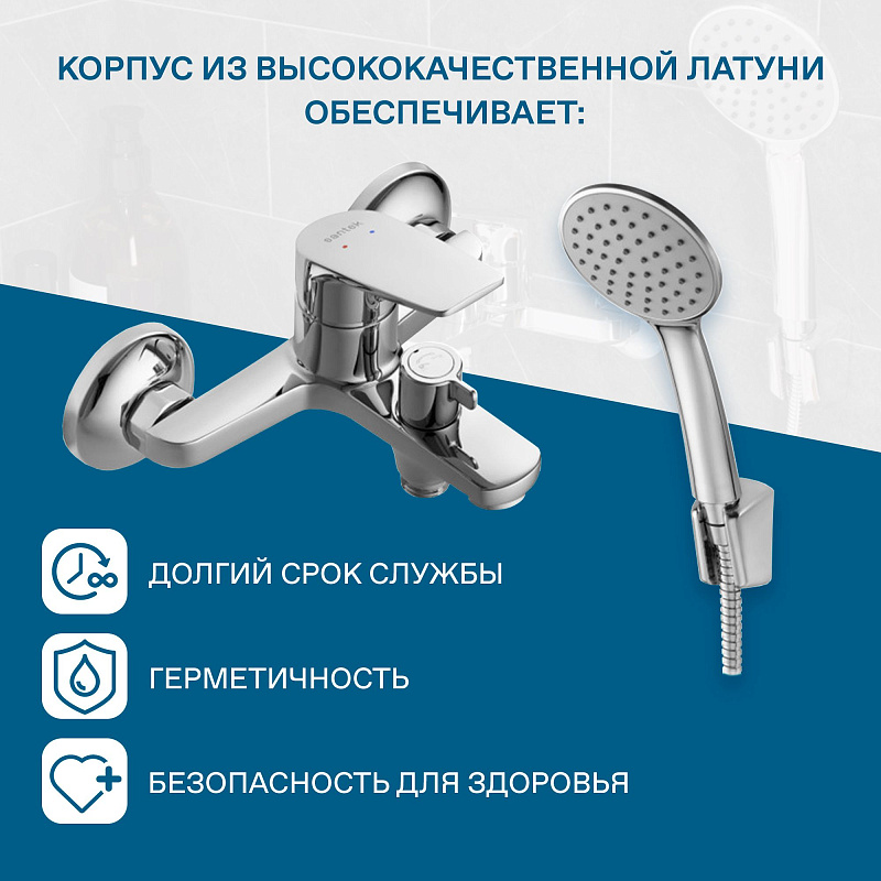 Santek Кант Смеситель однорычажный для ванны-душа, хром