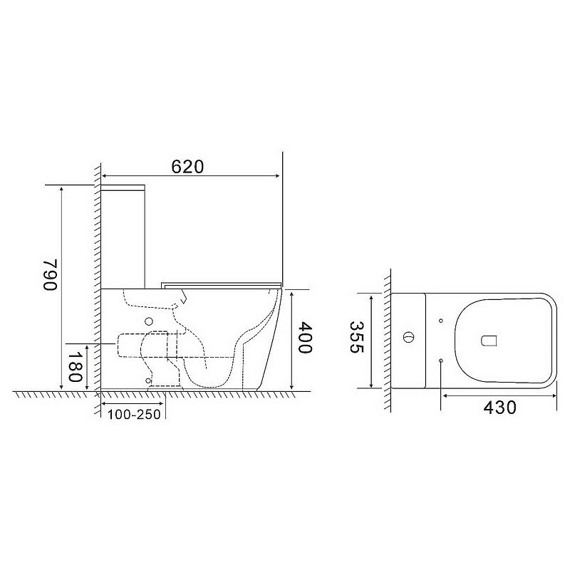 • Габариты 355х620х790 мм делают унитаз-компакт Azario RIANO идеальным выбором для ванных комнат любого размера, позволяя максимально эффективно использовать пространство.