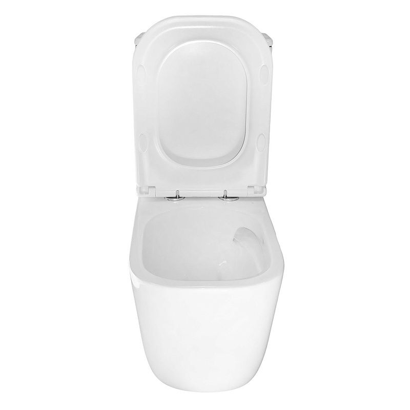 • Отсутствие ободка обеспечивает максимальную гигиеничность и упрощает процесс чистки, предотвращая скопление бактерий и известкового налета.