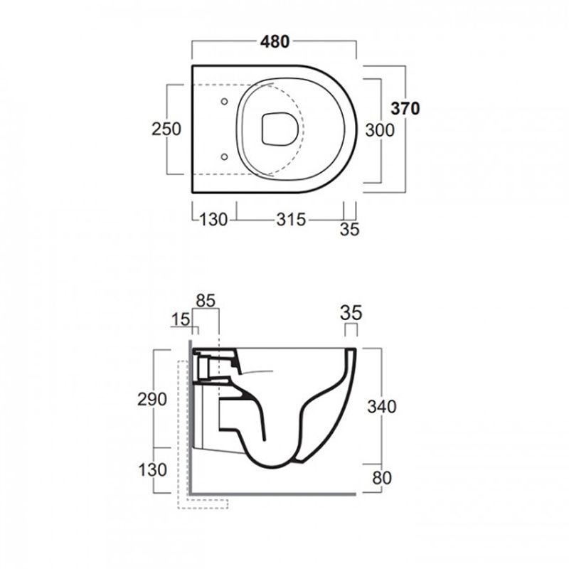 —Унитаз подвесной Simas Vignoni 370х480х340 безободковый, с креплением F85, укороченный XS, белый (VI28bi)