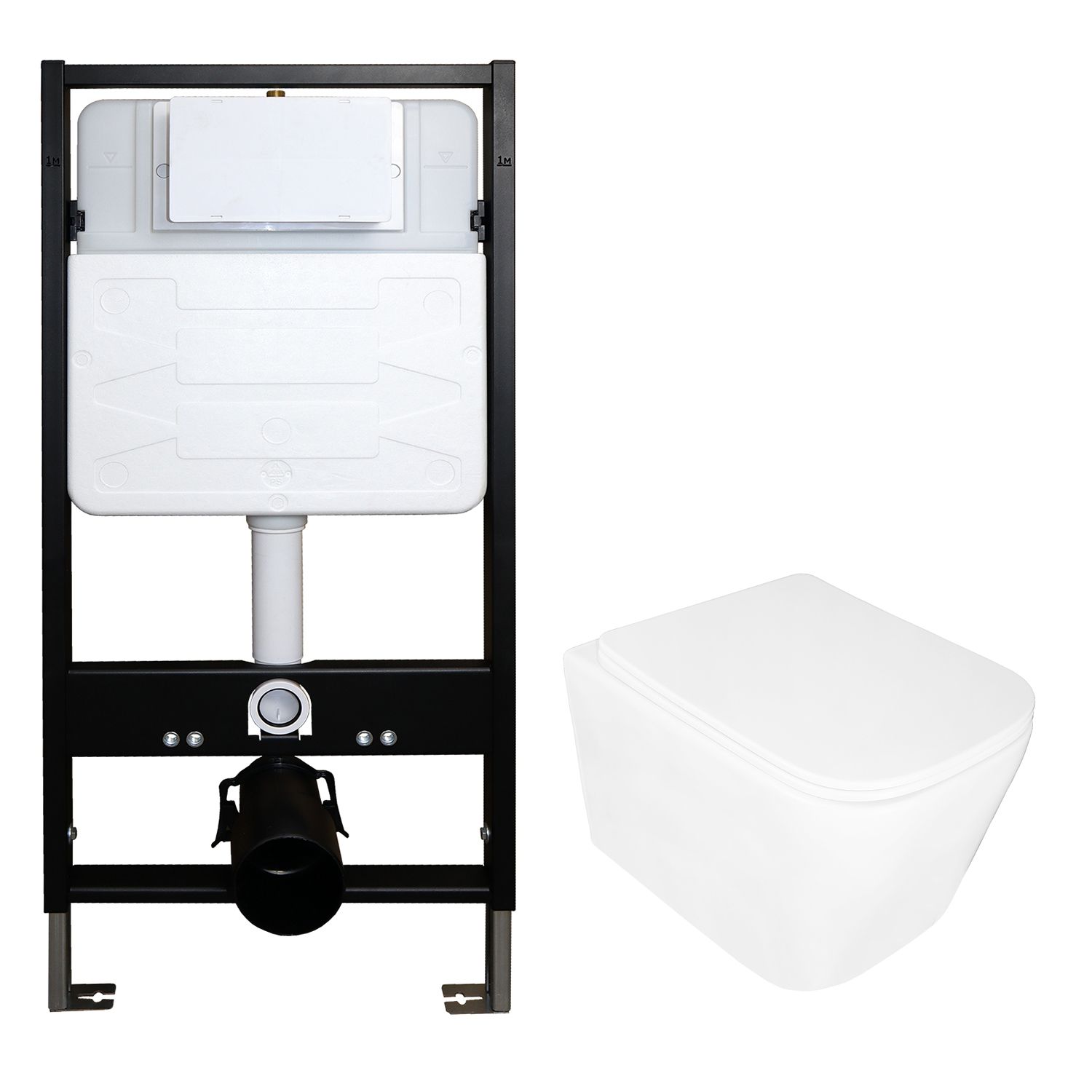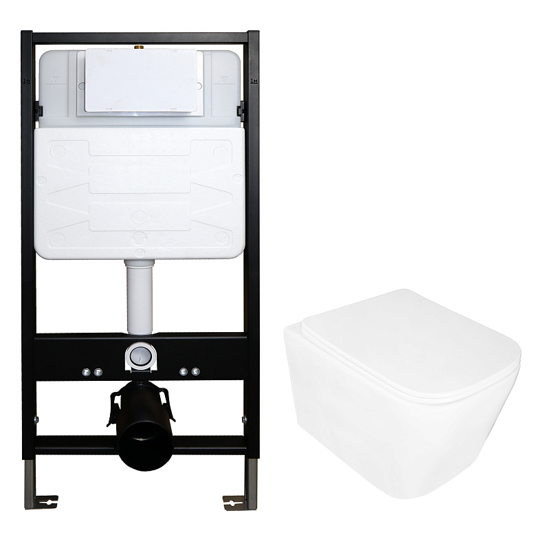 —Сет: Инсталляция для подвесного унитаза AZARIO FORTE 3/6л.+ подвесной унитаз Loranto DELPHI, с системой смыва Tornado, сиденье микролифт (AZ-100-100F+91343)