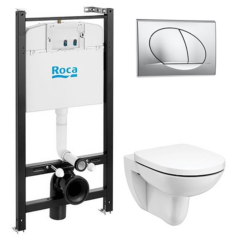 ПЭК Roca Debba Round Rimless: Инсталляция с подвесным унитазом, быстросъемное сиденье микролифт + Кнопка смыва Roca ACTIVE PL 42B, хром глянец (Z.RU93.0.773.5)