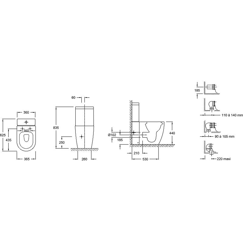 Габариты  чаши унитаза (ШхВхД): 365х440х625 мм.
