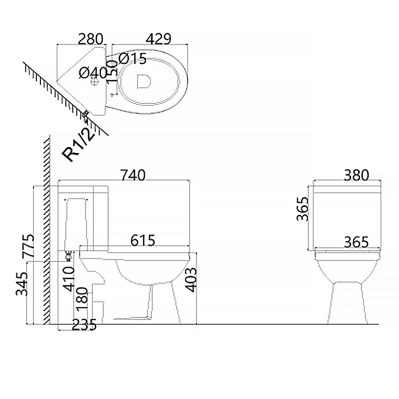 —Унитаз - компакт угловой Creo Ceramique PROJECT 380х740х755, микролифт, белый