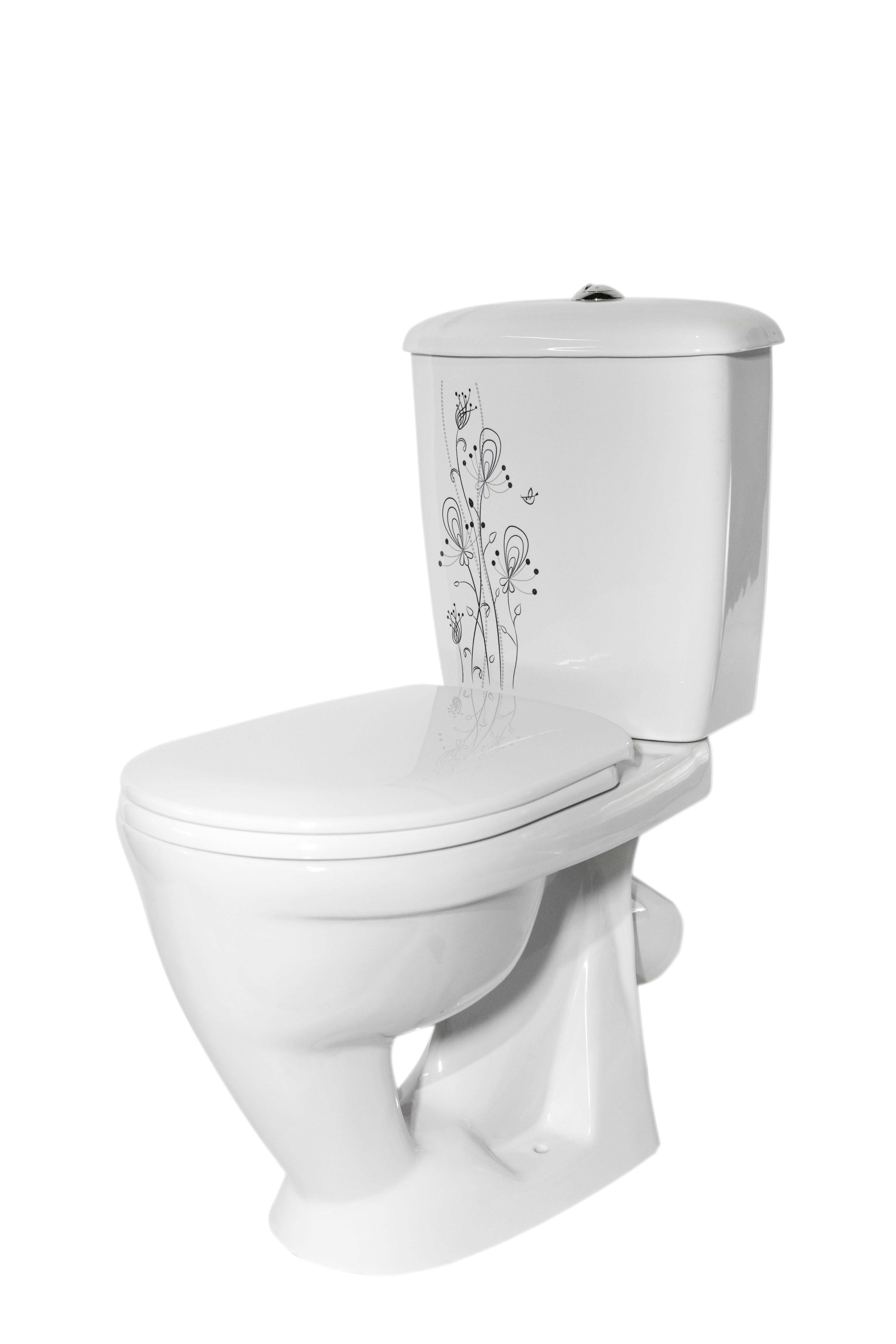 Унитаз-компакт Радуга тарельчатый декор Цветы Стандарт, сиденье полипропилен