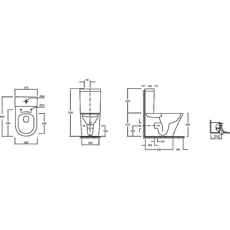 Габариты чаши унитаза (ШхВхД): 360х400х665 мм.