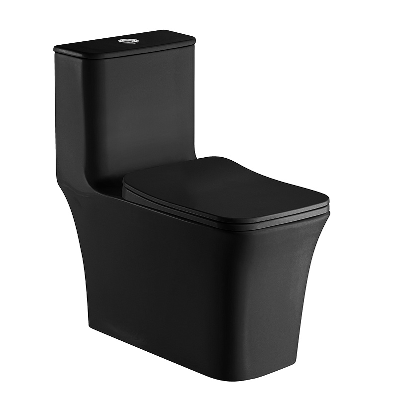 — Унитаз-моноблок AZARIO GRESSA 705х370х760 напольный, безободковый в комплекте с сиденьем микролифт, цвет черный матовый (AZ-1111MB)