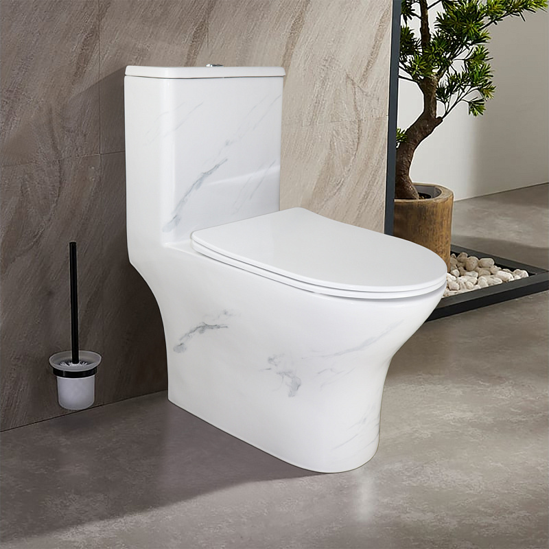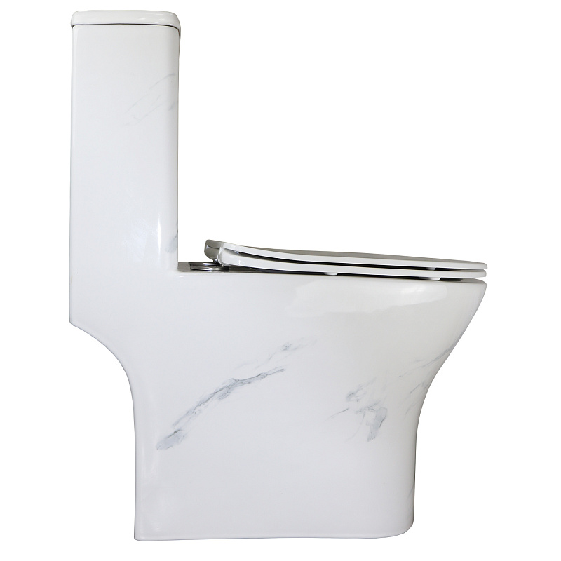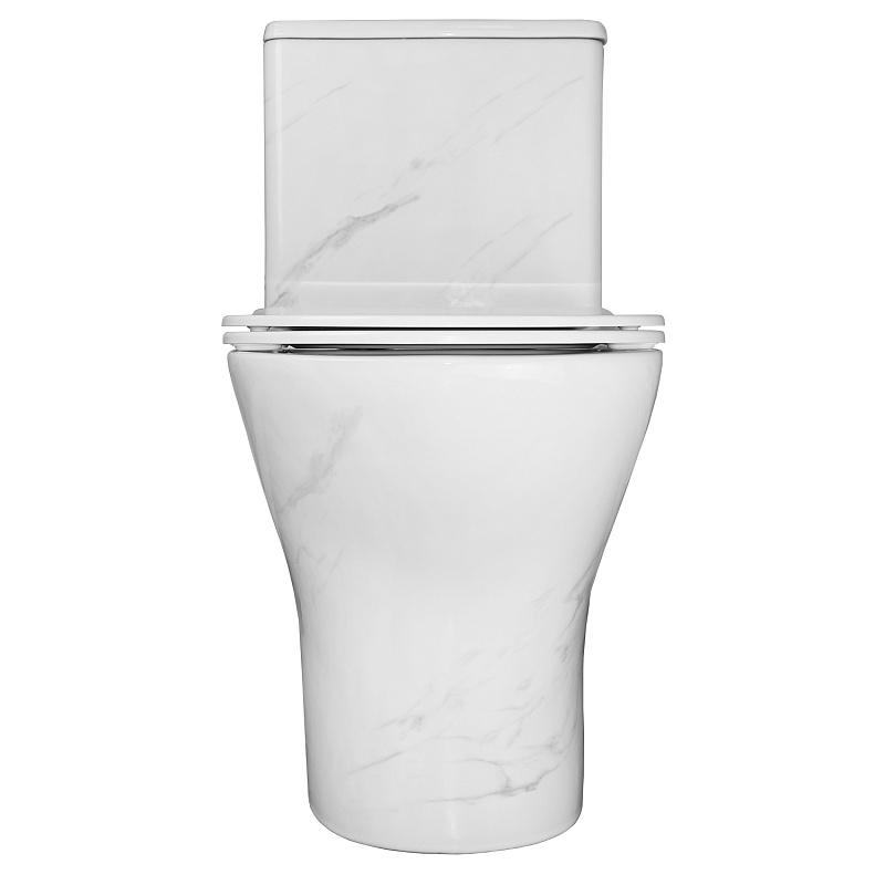 —Унитаз-моноблок Azario Terni 350х670х760 напольный, безободковый, горизонтальный слив, сиденье дюропласт микролифт, цвет - белый мрамор (AZ-8618M)