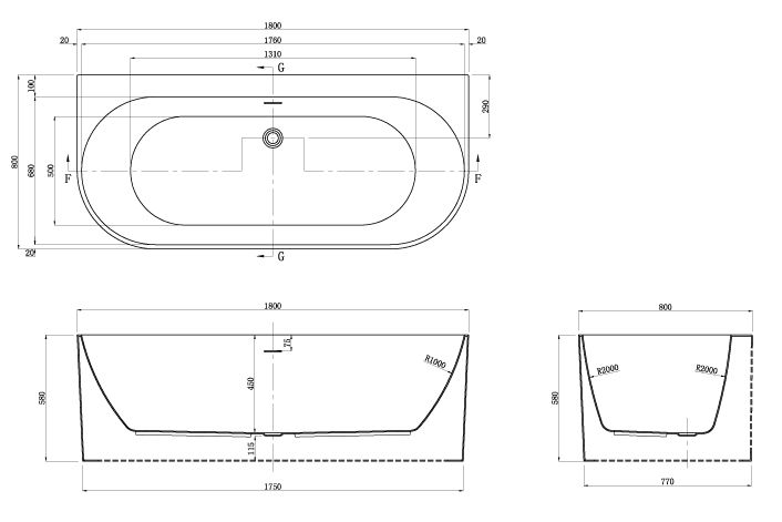 Ванна акриловая Azario BRADFORD х180 пристенная (BRA18080)