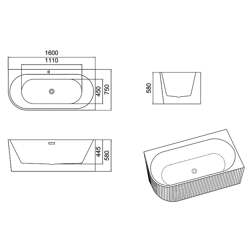 Комплект включает металлическую раму для надёжной и простой установки, а также сифон, обеспечивающий эффективный слив воды. Размеры ванны 1600х750х580 мм позволяют комфортно разместиться и экономят пространство в помещении. Azario LAGO BLANCO — сочетание практичности, качества и современного дизайна для вашего комфорта.
