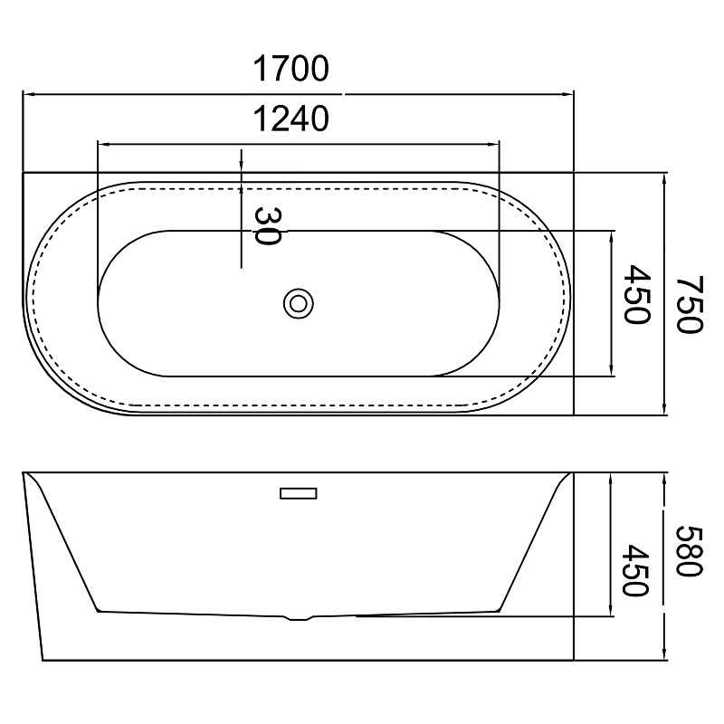Ванна акриловая Azario Рио Гранде 170х75 пристенная (AZ-6724-2R 17075)