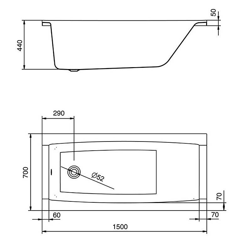 —Ванна акриловая Santek Санторини 150х70 пристенная (1.WH30.2.497)