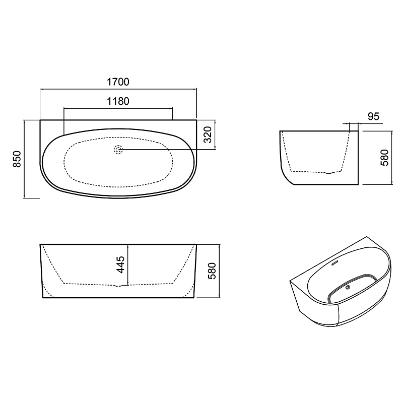 Размеры ванны 1700х850х580 мм обеспечивают просторное внутреннее пространство для комфортного принятия водных процедур. Пристенная конструкция позволяет удобно разместить ванну вдоль стены, экономя пространство и создавая аккуратный интерьер.